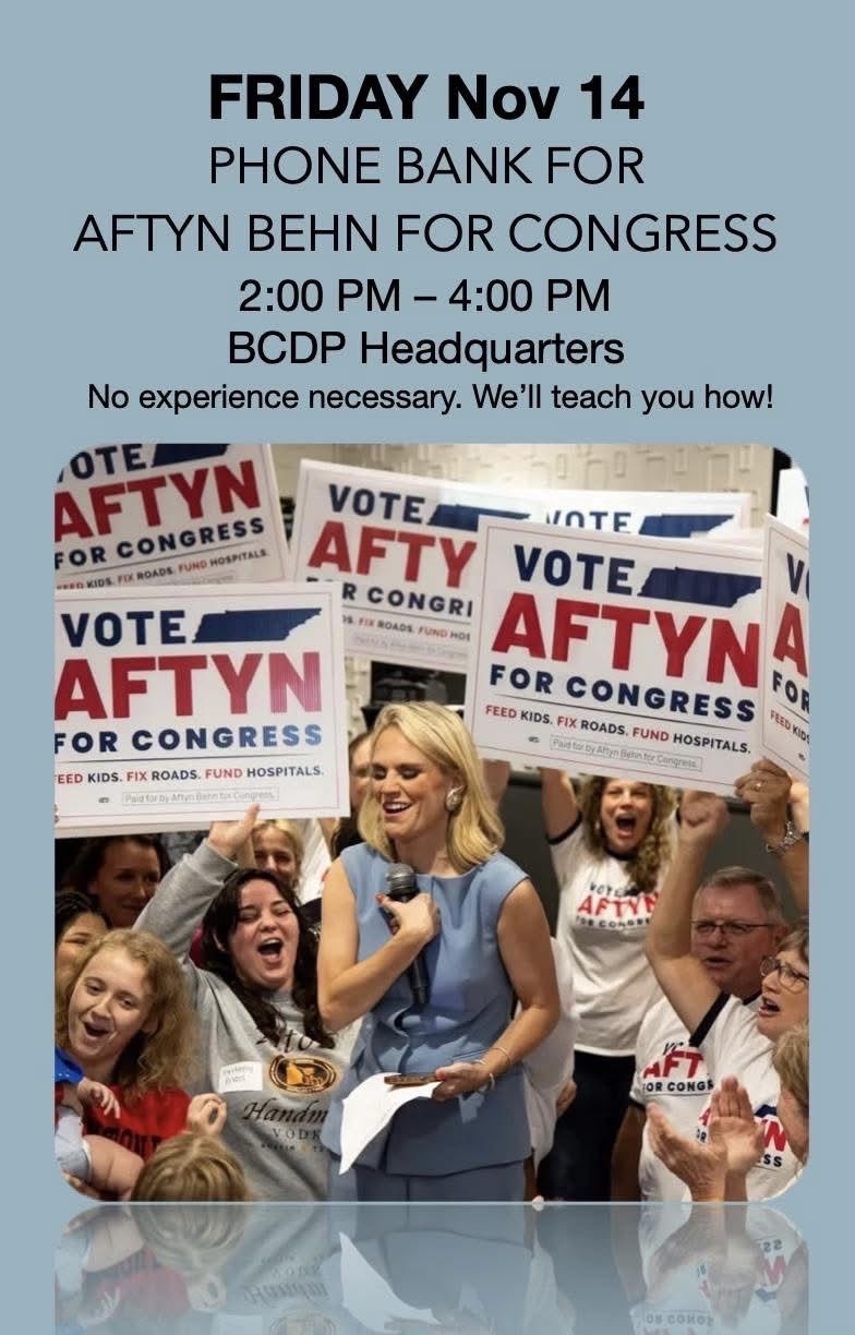 Join the Blount County Democratic Party to phone bank for Aftyn Behn for Congress. No experience necessary, we’ll teach you how. |