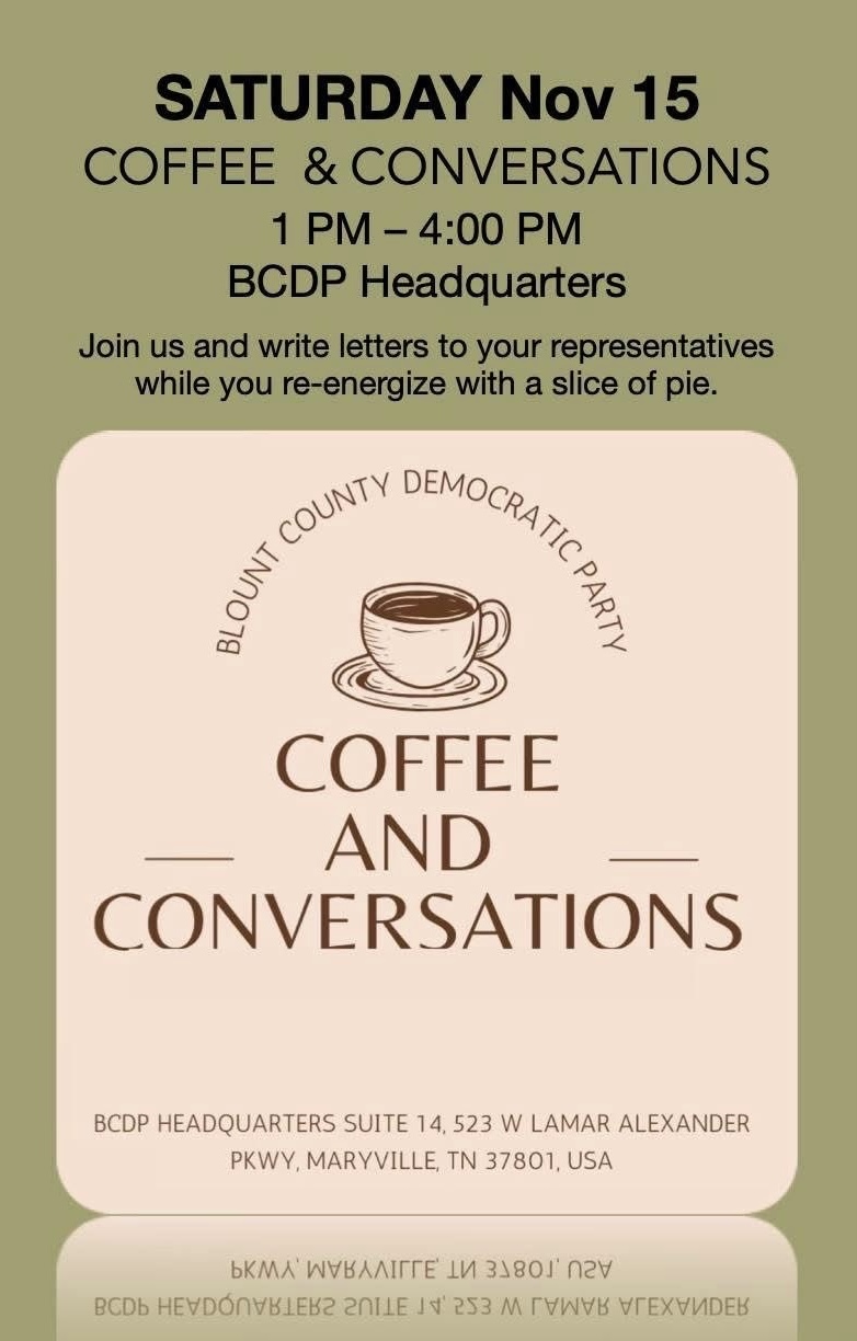 Join the Blount County Democratic Party and write letters to your representatives while you re-energize with a slice of pie. |